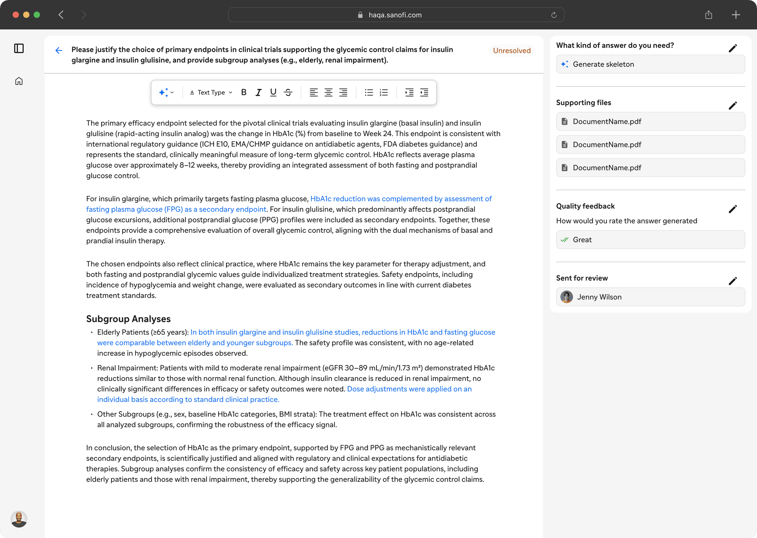 Giving medical writers AI-powered tools to generate first drafts efficiently removes friction from complex workflows. By making the experience simple and approachable, writers can focus on high-value work and move faster with confidence.