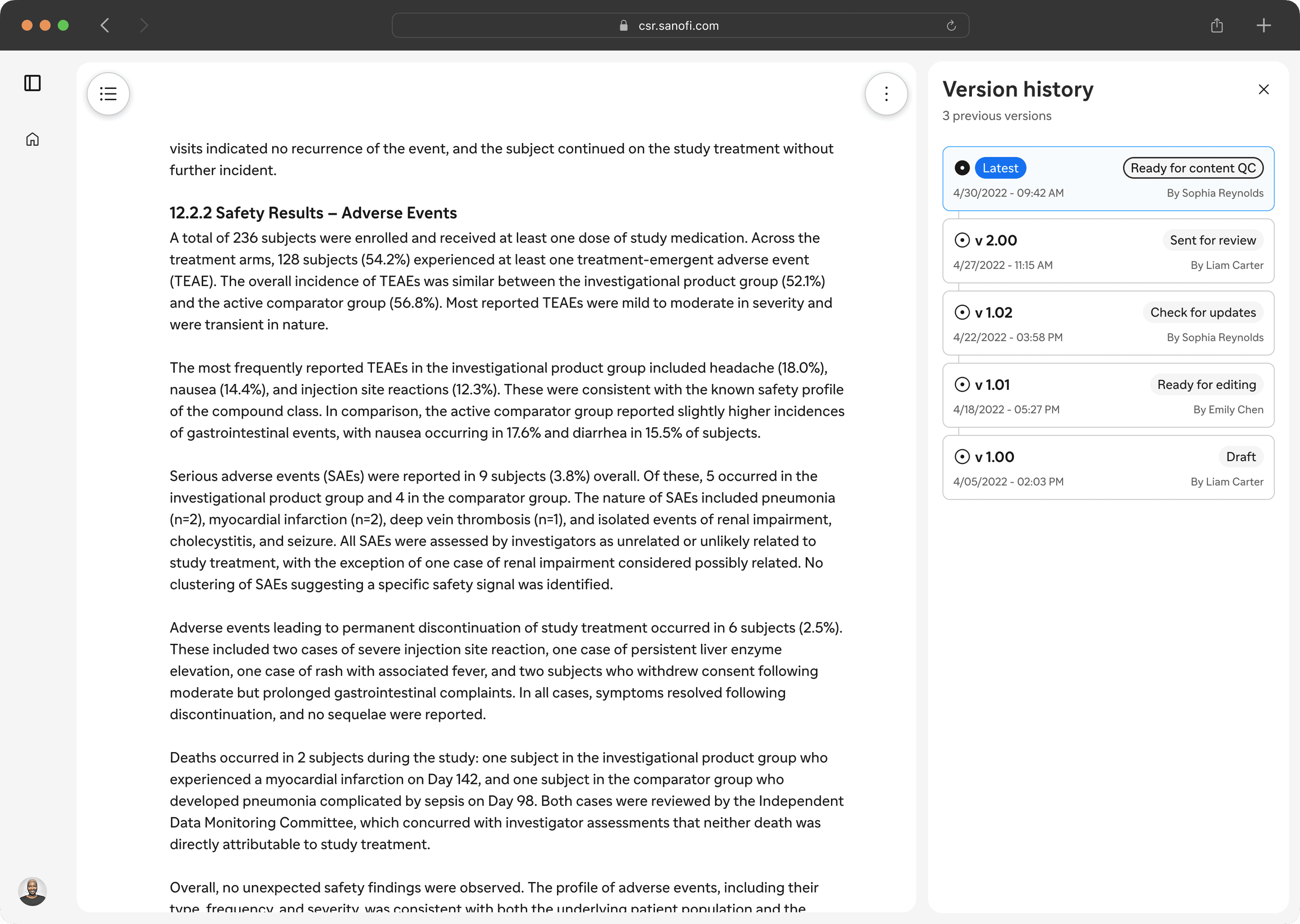 Medical writers relied on Word files, with no versioning or collaboration features. This made creating first drafts slow and led to inconsistent structure, even for highly regulated documents.
